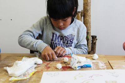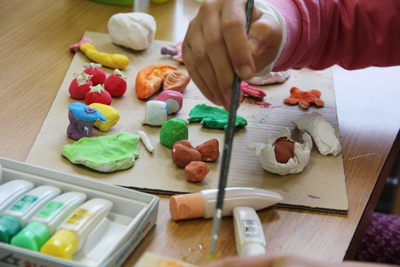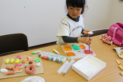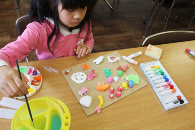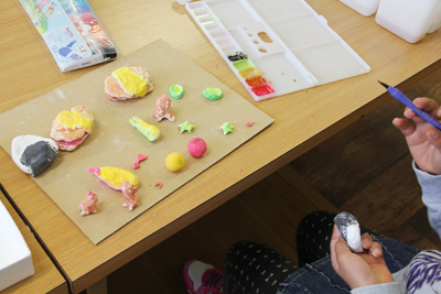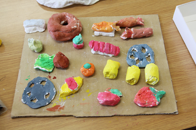 アートスクールでは、恒例の紙粘土で夢のお弁当を作ろう!にチャレンジしました。