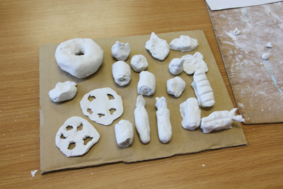 グレーで穴の開いたのはレンコンです。家で本物のレンコンを見た時、