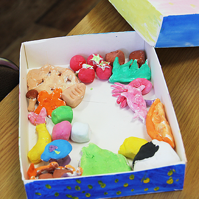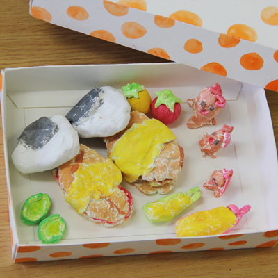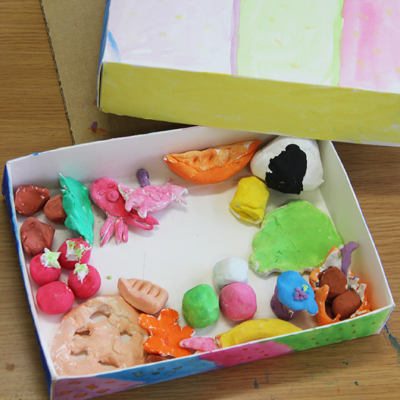 アイデアスケッチ、紙粘土作り、色塗り、お弁当箱づくりと、ちょっと大変でしたが、