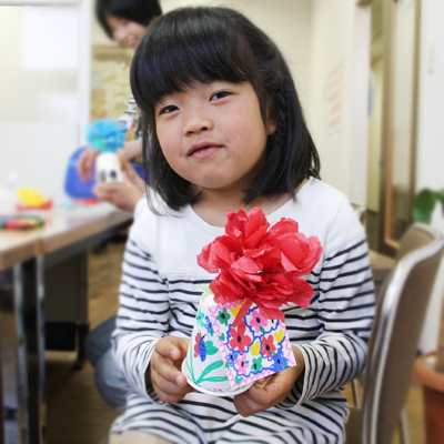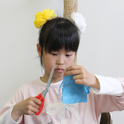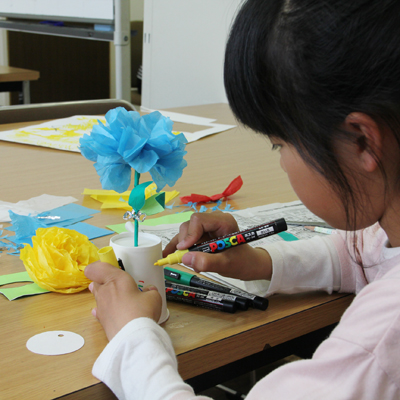 子どもたちは事前に、「ペーパーフラワーやるよ」と聞いていたので、ワクワク気分でやってきました。