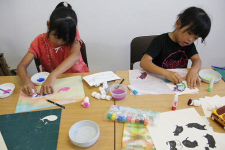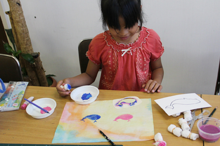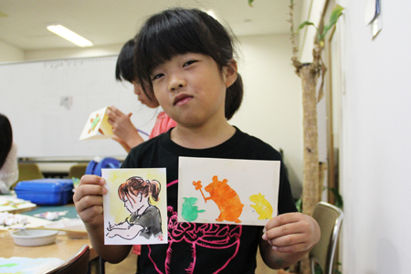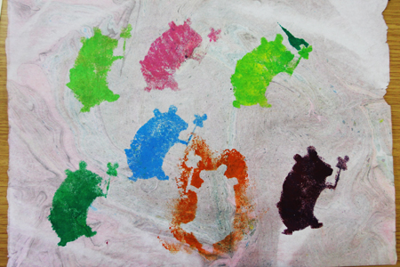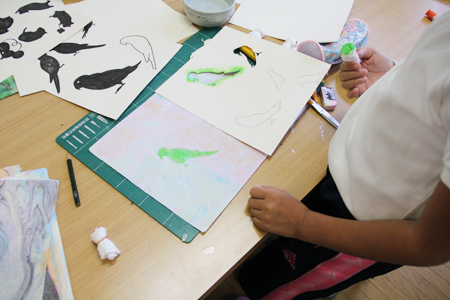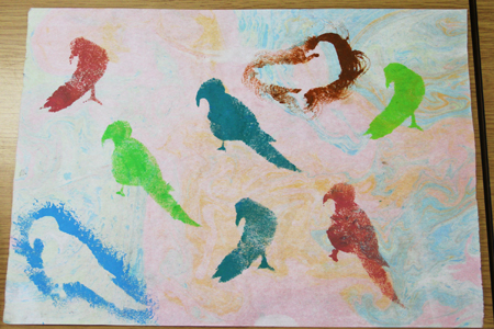 マーブリング和紙にステンシルアート! (水曜日小学生クラス)