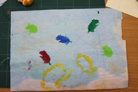 ステンシルというのは、型紙をつくり、絵具をつけた布を上からたたいて、