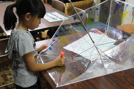 なかったようでしたが、デザインが決まると、ビニール傘に描く段階では、ペンを