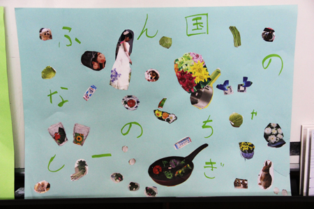 小さく切って貼られているのは、ワンちゃん、ウサギさん、子豚、野菜やお花たち。
