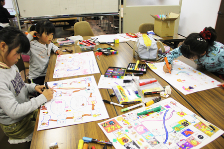 完成したら、みんなでそれぞれのすごろくをやって楽しみました。