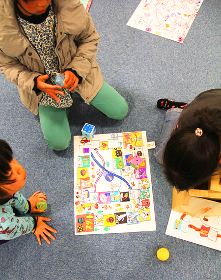 最後は、金曜日のアートスクールで作ったすごろくにトライ。