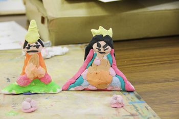 そして、参考になるように、小さな雛人形を紙粘土で作って