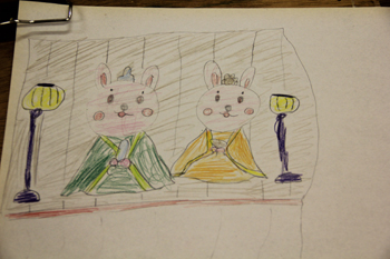 ななちゃんはウサギさんの雛人形を考えたようです。