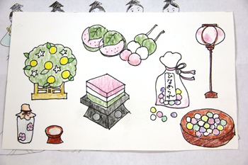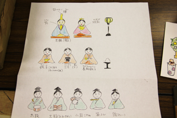 雛壇の小道具、飾り物もイラストにしておきました。