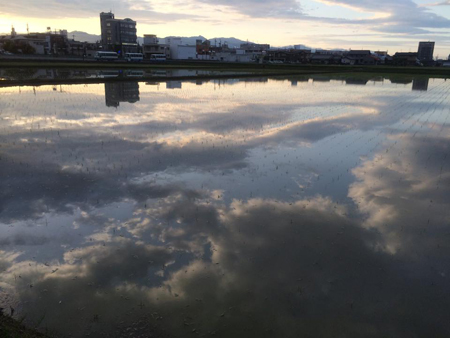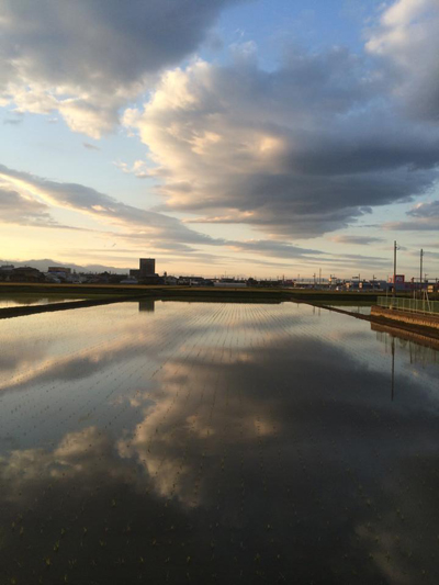 田植えの終わった水面(みなも)が、