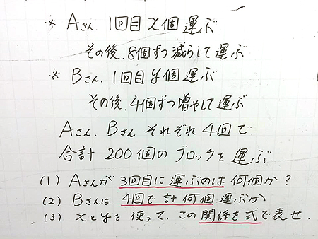 「ウチの中1の娘は数学の文章題だけが苦手で、どうやって勉強したらいいか分からないんです。」というお母さんが相談に来た。