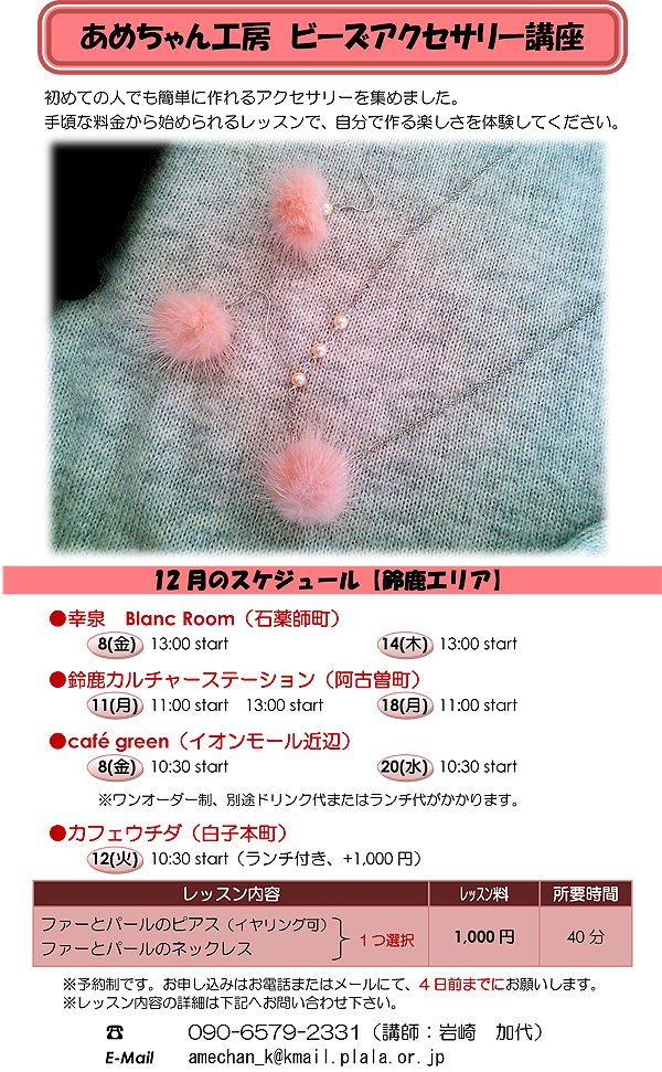 ※レッスン内容の詳細は、岩崎までお電話等でお問い合わせ下さい。