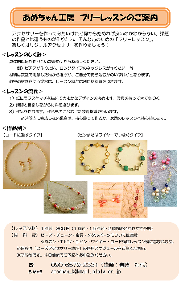 ※レッスン内容の詳細は、岩崎までお電話等でお問い合わせ下さい。