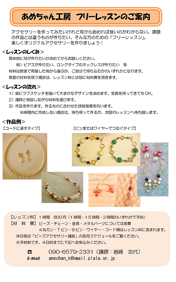 ※レッスン内容の詳細は、岩崎までお電話等でお問い合わせ下さい。