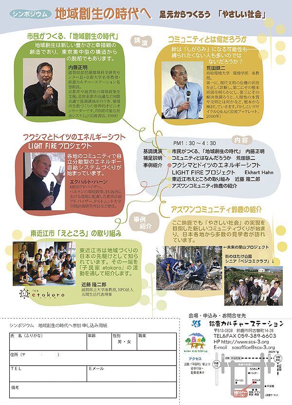 今回はここ鈴鹿市と東近江市のまちの一角から始まっている地域づくりの取り組みや、