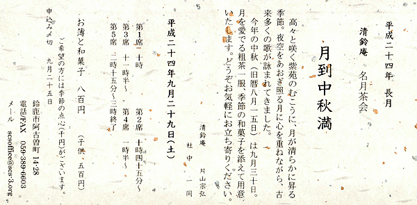 月を愛でる粗茶一服、季節の和菓子を添えて用意いたします。