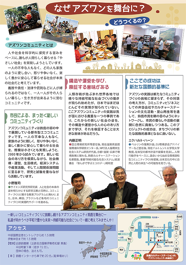 ◆後 援:鈴鹿市(申請中)、NPO法人循環共生社会システム研究所(KIESS)、Giobal Ecovillage Network Japan