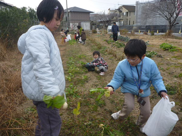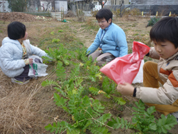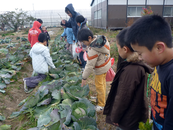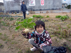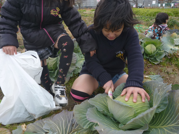 はたけ公園で冬物最後の収穫。キャベツ収穫はすごく力が要りました。