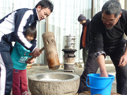 杉本さんが下ごしらえしてくれたら、さあいよいよつき開始!!