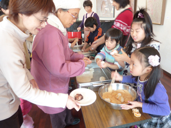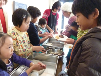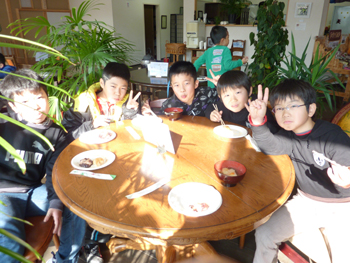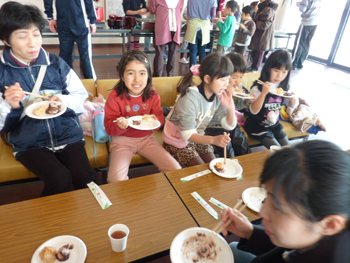 それぞれにテーブルを囲み、その出来具合に、満足そう。「おいしー」と歓声も聞こえてきます。