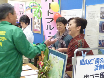 この日、鈴鹿市長の末松氏が来場し、SJPのブースに顔を出したので、段ボールコンポストのパンフレットを手渡した。上記の内容を伝えると、「読んでおきます」と言って持っていかれた。