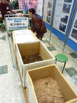 1月14日、15日の二日間、鈴鹿ハンターで開催された「第11回鈴鹿川流域の環境展」にNPO鈴鹿循環共生パーティが参加し、里山での活動を紹介するパネル展やダンボールコンポストなど実物を展示PRした。