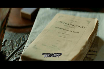今の私たちにとって「アナーキスト」と解説されてもあまりピンとこない面もある。ところが、2009年公開の映画『ココ・アヴァン・シャネル』の中には、アナーキストの父と称されるブルードンの『貧困の哲学』書がちゃんと映されている。(下の写真)