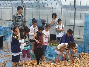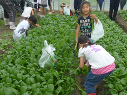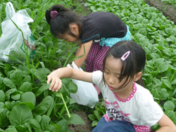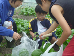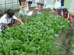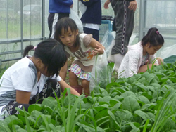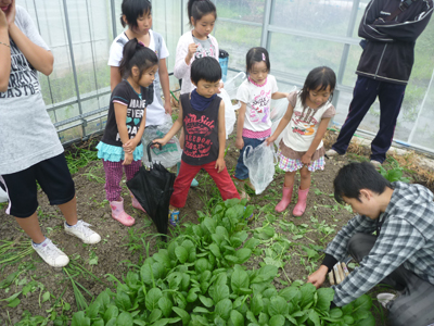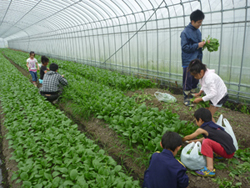 はたけ公園内のハウスにて、野菜の収穫体験をしました。