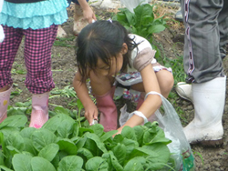(街のはたけ公園で 野菜のお世話)