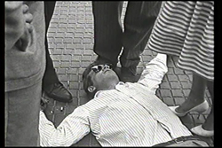 道路に倒れ、取り囲む警察とパトリシアに、「最低だ」とつぶやく。