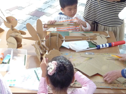 SCSアートスクールでは、「段ボールクラフト」コーナを設けました。