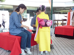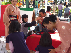 二人の着物姿に、まず驚かれ、寄って来ては、どんなお稽古をしているの?と、お喋りしながら、桟敷席で寛いでお茶を味わっていかれました。