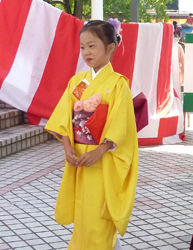 小学生の秀果ちゃんは、黄色の着物を着てお化粧し、お客様にお茶を運んぶ役を繰り返しくり返し、飽きずにやっていました。その姿は蝶々がひらひらと舞うようでした。