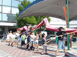 龍舞いは、かつて太鼓部の子達の発表用に作った手作りのものを、今回初めて