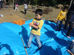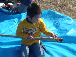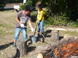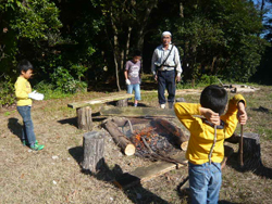 早速、火をつけます。火をつけるのは男の子です。ちょー張り切ってます。