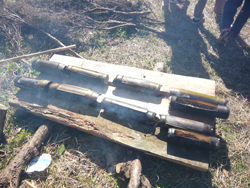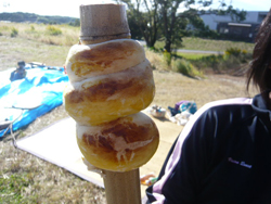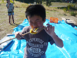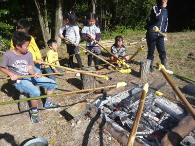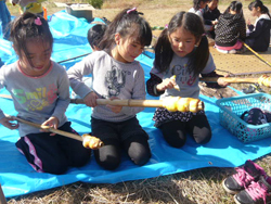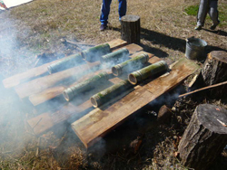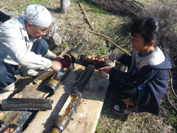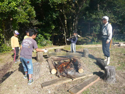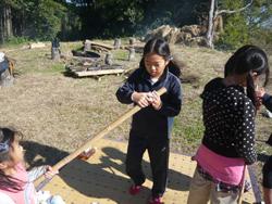 さあ、こんどはパン作りです。切り出した竹の棒に、近所の人に用意しても