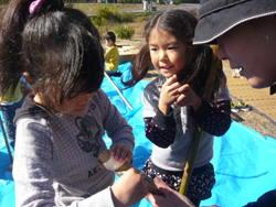 男の子は米とぎ担当!!女の子は材料切りよろしくね。