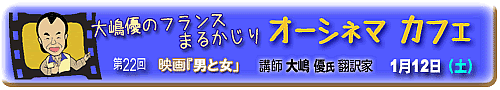 フランス映画は、エンターテーメントではなく芸術なんだ。鑑賞者はどのように受け取ってもよいし、想像力は見る側の視点で大いに膨らみ、楽しめる。だから、ただ見て終わり、楽しかった、で終わらないところに大いなる価値が潜んでいる。その価値を引き出して、人間や文化の尊さに触れることが芸術を鑑賞するということではないか。そのナビゲーター役が講師の大嶋さんなのかもしれない。