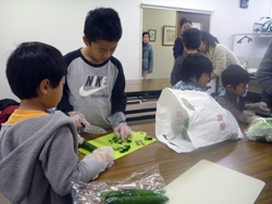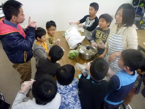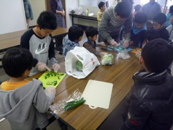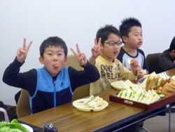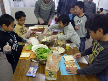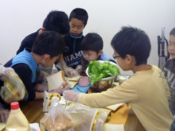 調理開始、男の子はサンドイッチづくり!