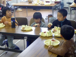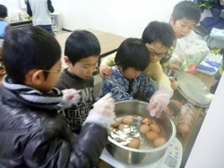 ツナをはさんで、卵をむいて。(これも、その時やりたい子が寄ってきてやってます)