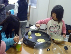 女の子もホットケーキ焼きを始めました。