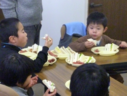 男の子はサンドイッチ。