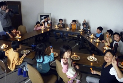 今度はケーキタイム。ろうそくに火をつけて、キャンドルサービス。