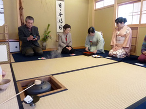 前日は雪模様でしたが、19日は快晴。本当にたくさんの方に応援して頂きお茶会ができました。三回目の初茶会、緊張しないで茶室で点前を楽しめると口コミで広がり、韓国訪問団や子供さん連れ含めて、これまでで最高の参加がありました。