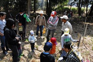 朝は冷え込んでいましたが、好天に恵まれて第二回里山まつりが開催されました。昨年秋に初めて開催された企画で、〈体験の風を起こそう―春の子ども体験まつりパート1―子どもゆめ基金の助成活動〉として開かれたものです。