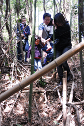 森の中に入っていきます。小さい子には、ちょっと難関です。