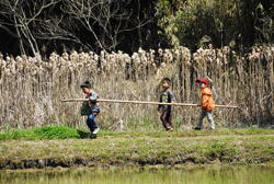 中島さんと小3の男の子2二人が、竹を切り出しにいってました。