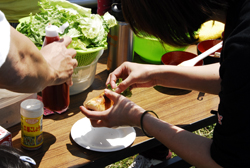 ウインナーも細い簾の棒に刺して焼き、それをパンに挟んで、ホットドックにしました。