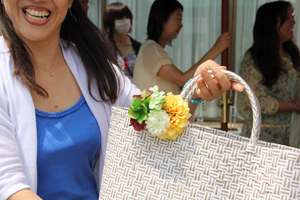 プラ板で作られたというアクセサリーですが、そこに、“レジン”という液体を塗って仕上げています。レジンによって表面が盛り上がり、ガラスの質感を放っていました。これが高級感の秘密ですね。