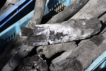 中を覗くと、炭が…